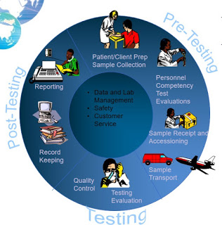 Một cách tổng thể về đảm bảo chất lượng xét nghiệm chúng ta sẽ thấy có 3 giai đoạn rõ ràng trong quy trình đảm bảo chất lượng để mang lại kết quả có ích cho bệnh nhân. Đó là giai đoạn trước xét nghiệm (Fre-Testing), giai đoạn xét nghiệm (Testing) và giai đoạn sau xét nghiệm (Post-Testing).