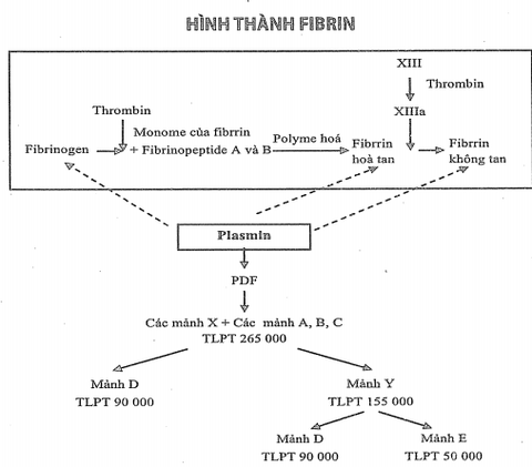 1. Quá trình tạo fibrin (fibrinoformation): dưới tác động của thrombin, fibrinogen lưu hành được chuyển thành fibrin đơn phân (monomere) rồi thành fibrin polymere dưới tác động của yếu tố XIII.